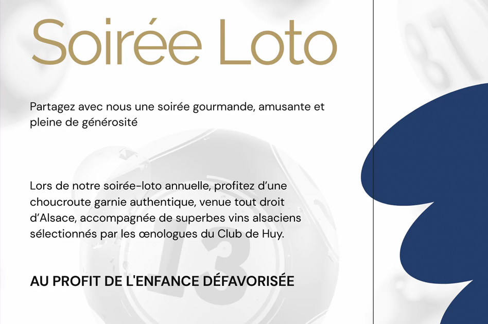Lors de notre soirée-loto annuelle, profitez d’une choucroute garnie authentique, venue tout droit d’Alsace, accompagnée de superbes vins alsaciens sélectionnés par les œnologues du Club de Huy. |